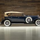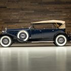 The 1930 Packard 745 Deluxe Eight Sport Phaeton emerged at the height of Packard’s Classic Era dominance, built on the long 145-inch wheelbase chassis and powered by the refined 384-cubic-inch straight-eight that symbolized the company’s engineering excellence and prestige. Developed as a flagship open model, the 745 combined advanced mechanicals with quality coachwork, giving affluent buyers a car that was as sophisticated to drive as it was impressive to arrive in. The dual-cowl sport phaeton body style is especially desirable today for its dramatic proportions, open-air touring experience, and elegant, sporting profile, offering the glamour of a convertible with the practicality of four-door, dual-compartment luxury motoring.
