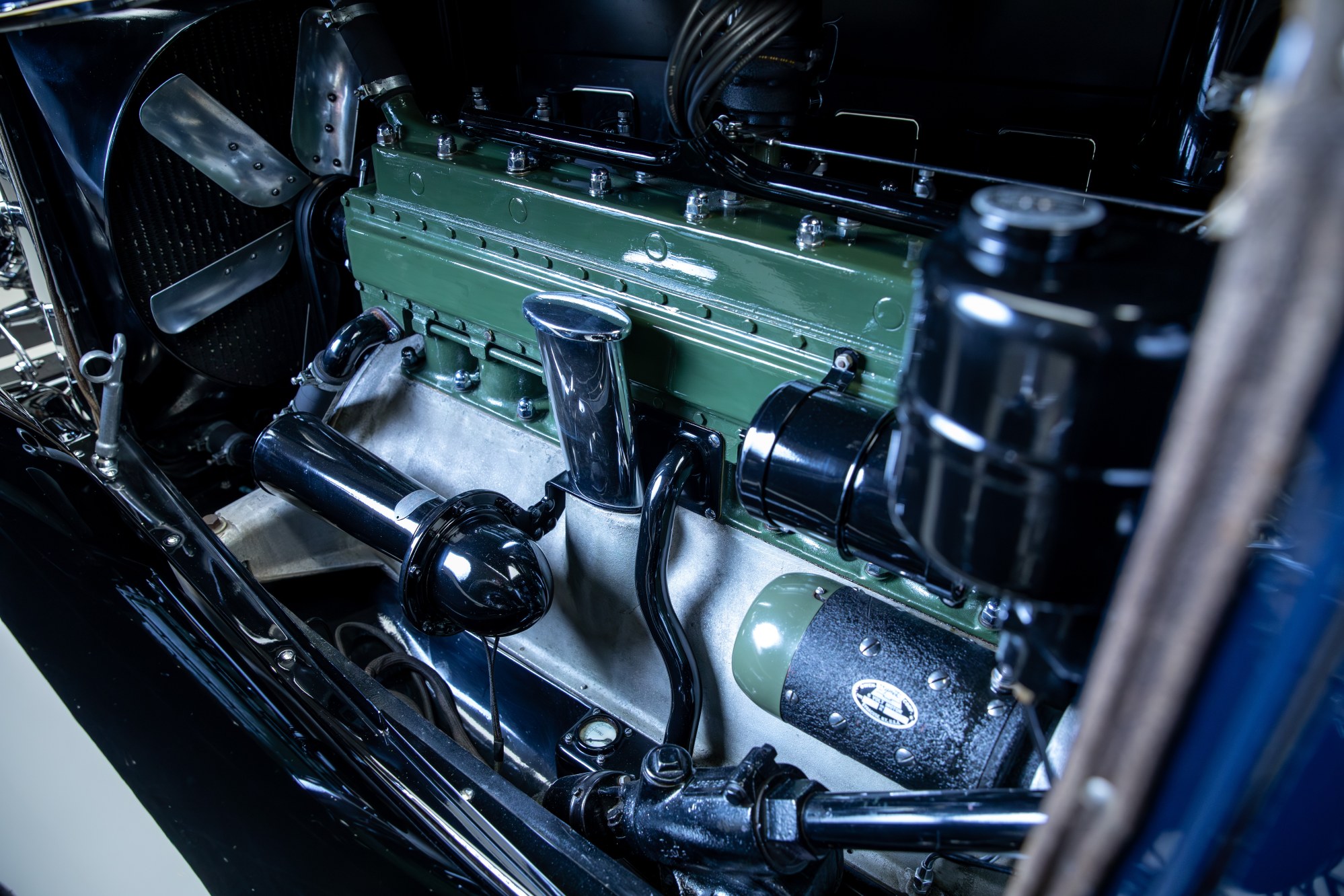 Shortly after winning its prestigious awards, Tom Lester, the founder of the Lester Tire Company, would welcome this Packard into his own collection. Mr. Lester would then sell this Packard in 1972 to the Craven Foundation of Toronto, Ontario. Established by the Canadian Tobacco Company of the same name, the Craven Foundation was comprised of a large gathering of finely selected automobiles and a large reference library, housed together in a purpose-built public museum. Known as one of the greatest collections ever housed in Canada, this Dual-Cowl Phaeton Packard was hailed as one of the more famous, “signature” automobiles within the collection. Following the acquisition of the House of Craven, the museum was dispersed and this Packard was acquired by Ross N. Young of Lindsay, Ontario in 1986. Retaining the car for 22 years, Young would sell this Packard to noted Ontario collector and enthusiast Jim Miller in 2008. Under his care, this Packard underwent a high-quality cosmetic restoration carried out by RM Auto Restoration. During this process, it was refinished in the same Packard Blue and black selected by Harold Crosby and the chrome was re-plated. The restoration was finished in 2010 and documented by a handful of photos. A treasure among his impressive collection, Larry Tichner of Ontario would acquire this example in 2013 and then noted Ohio collectors Jim and Namcy Scharfeld in 2015, who would then sell it to the late Dave Poulson.