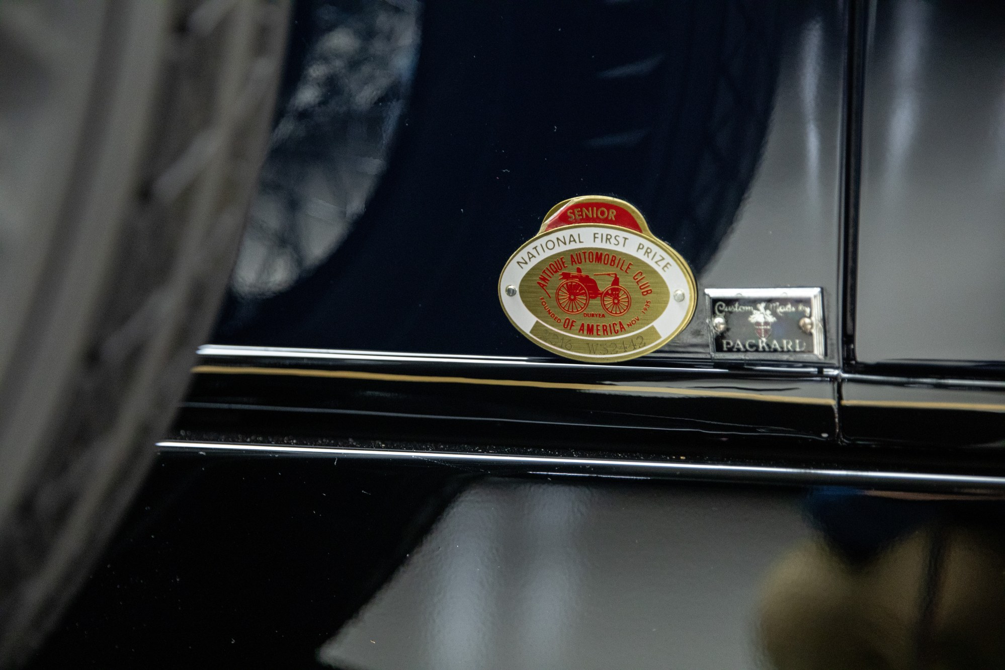 Under Mr. Poulson’s care, this Deluxe Eight Sport Phaeton was once again entered into the show field, where, in 2016, this superb Packard obtained its AACA Senior National First Prize badge and then in 2020 was pinned with a Grand National Winning badge. It also won the Award of Distinction at the Ault Park Concours d’Elegance, was invited and shown at the Amelia Island Concours d’Elegance and won the Lion Award at the Concours d’Elegance of America. Mr. Poulson would sell this marvelous and storied Packard to the current owner, who has greatly and carefully appreciated its stout and important presence for a number of years, maintaining it in concours show appearance.